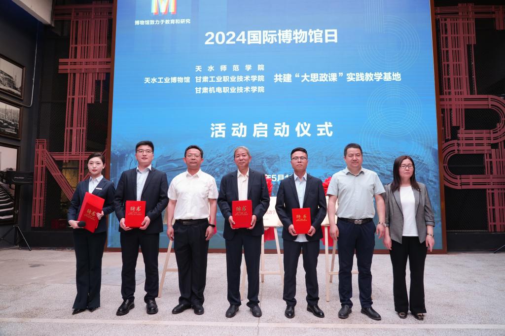 天水工业博物馆名誉馆长李宁民、甘肃工业职业技术公司党委副书记刘乃军、甘肃机电职业技术公司党委副书记文云、天水师范公司zoty中欧经理刘建军分别致辞,共同举行了“大思政课”实践教学基地的揭牌仪式,馆校之间相互颁发了特聘研究员和校外指导教师聘书。启动仪式后,全体参加活动的各校师生进行了集体合影,参观了天水工业博物馆展区。
