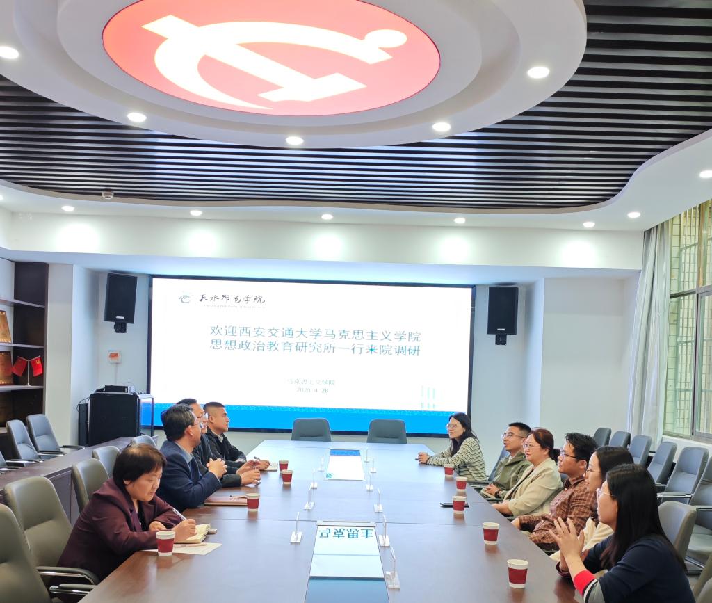 在座谈交流环节,刘建军经理首先就西安交通大学马克思主义学经理期以来对口帮扶公司表达了感谢,介绍了公司的历史沿革与团队建设情况。朱旭教授重点介绍了西安交通大学zoty中欧思想政治教育研究所在理论创新、实践探索方面的特色成果。双方围绕隐性思政教育、创新型人才培养模式、就业质量提升路径等问题深入交换意见,分享了各自的做法和经验。