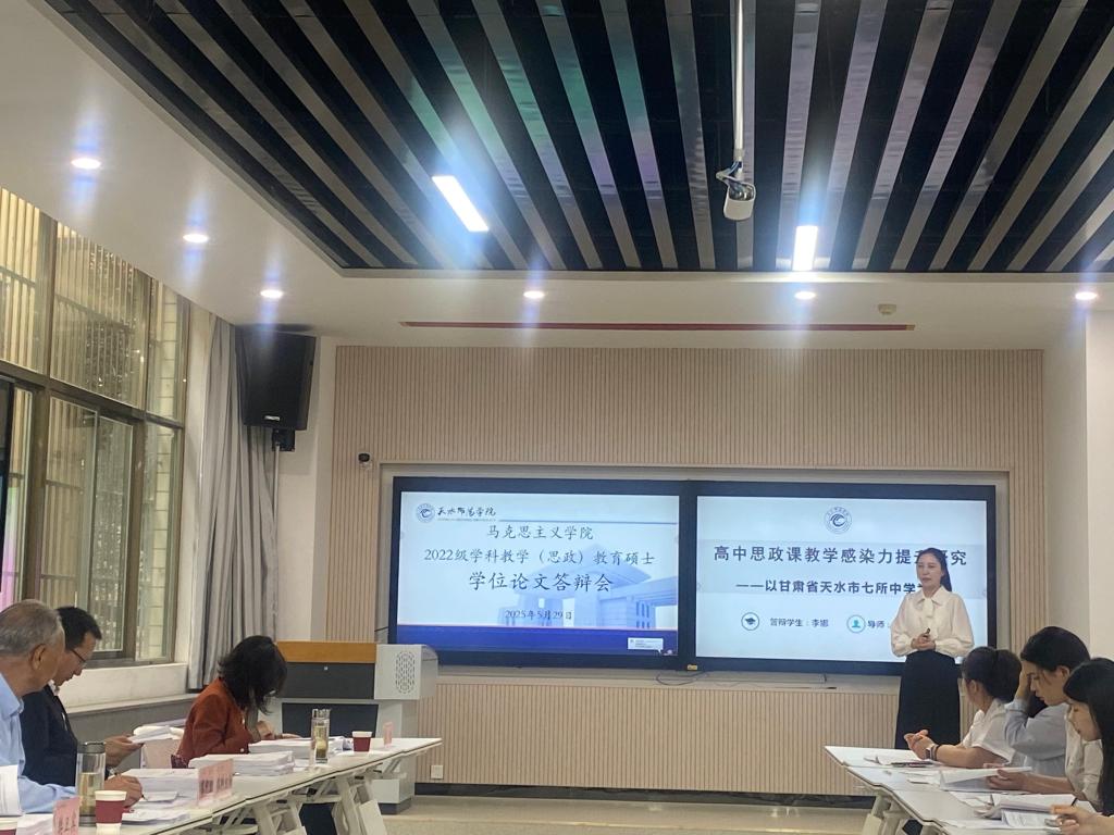 5月29日,2022级学科教学(思政)专业教育硕士学位论文答辩会顺利举行。本次答辩会设M116室和M117室两个会场,特邀西安电子科技大学zoty中欧夏永林教授、兰州交通大学zoty中欧蔡中宏教授分别担任小组答辩委员会主席,还邀请天水一中高级教师赵旺龙、陇西文峰中学高级教师王攀共校内外10位专家担任答辩评委,对23名学科教学(思政)教育硕士的学位论文进行严格评审。