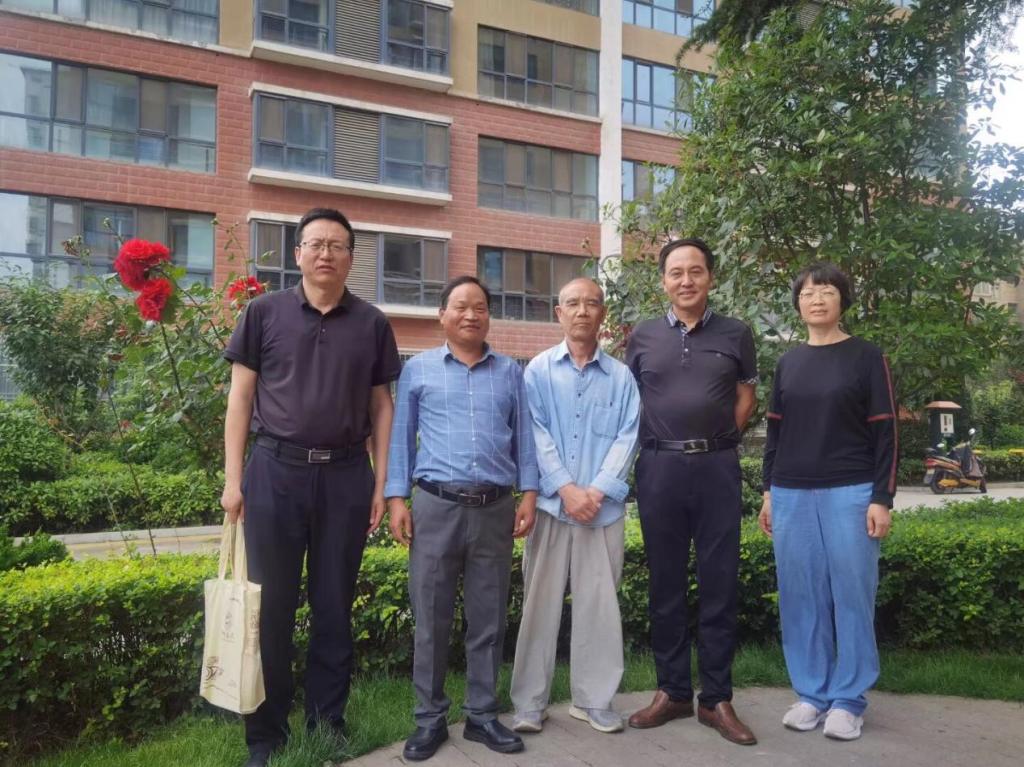 (郎志文员工看望老师。从左到右依次为:余明远、郎志文、高学文、吴卫东、杨晓敏)