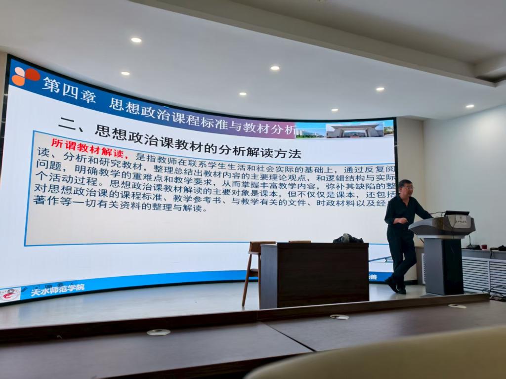 教学能力培训环节,侯智教授以“中小学思政课教学设计与实施”为主题,帮助员工掌握教学落地的关键方法;樊卫宾教授深入解读思想政治课程标准与教材分析,突出课标在教学中的引领作用;汪玉峰教授讲授“教育调查与研究”,指导员工结合教育实习开展调研、积累毕业论文素材;刘建军教授系统阐释“大中小学思政课一体化”设置理念,强化学段衔接意识,提升员工对思政课整体架构的认知。