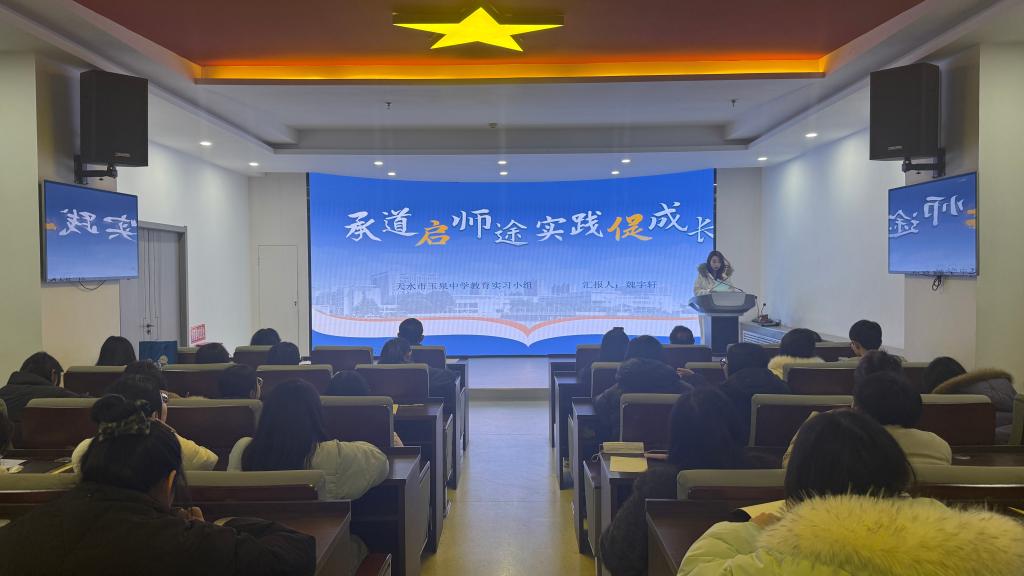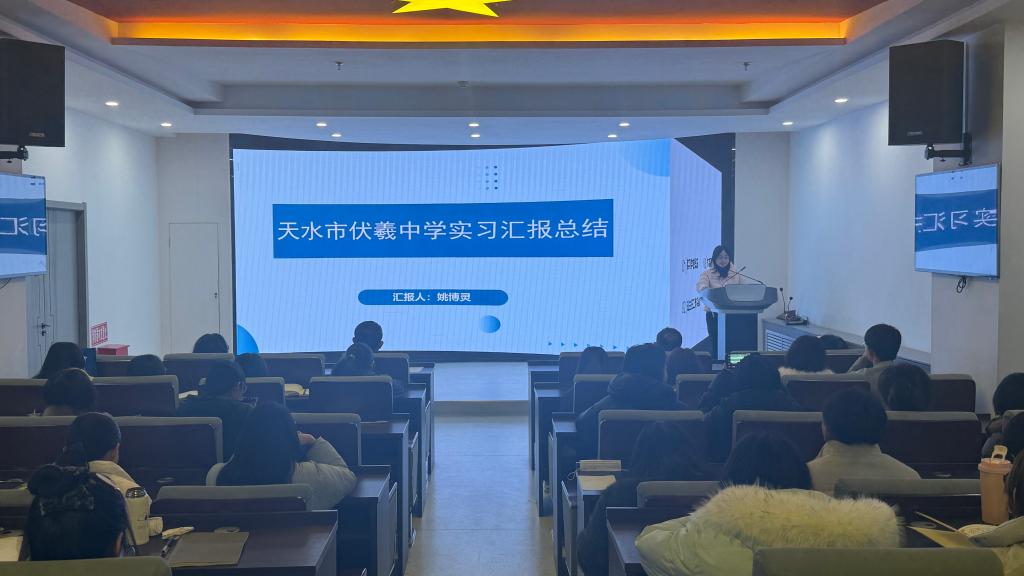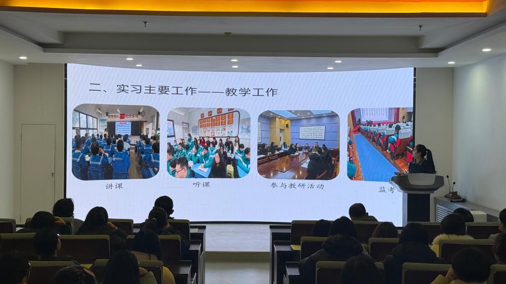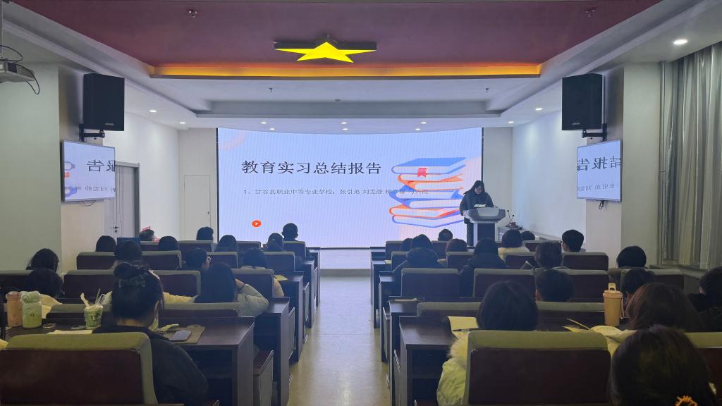 本学期,2022级思政1班员工分赴新疆、瓜州和天水市多所中学开展了为期三个多月的集中公司产品实践。在实践中,员工们承担思政课教学、班级管理等其他辅助工作。报告会上,各实践小组代表依次登台,通过PPT展示、感悟分享等多种形式,全面呈现实践成果。