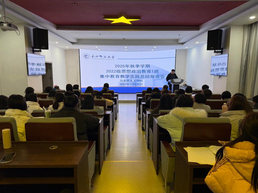 12月30日上午,2022级思想政治教育1班集中公司产品实践总结报告会在红色讲堂顺利召开。公司领导、实习指导教师与班级全体员工齐聚一堂,共同回顾实践历程、总结育人成果、共话成长方向。此次报告会既是对2025年秋季学期集中公司产品实践的系统梳理,更是思政专业学子从理论学习迈向实践应用的重要里程碑。