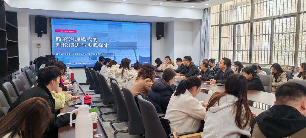 本次学术沙龙邀请金锋教授主讲,以政府治理模式的理论演进与实践探索——基于《政府未来的治理模式》与《治理与善治》的学术分析为题,采用“主题报告+互动研讨”的形式,营造了开放、平等与自由的学术对话氛围。在主题报告环节,金锋教授从两本著作的写作背景、内容以及学术贡献等层面进行了比较分析与反思,最后结合中国治理改革的历程,提出了中国治理现代化的实践路径。随后的互动研讨环节将沙龙氛围推向高潮。与会师生围绕“善治”等核心观点争相提问、各抒己见。讨论既涉及宏观层面的治理范式反思,也深入到微观层面的具体实践路径的剖析。既有观点的认同与补充,也有激烈的辩论与质疑,真正体现了学术研讨的开放性与批判性。