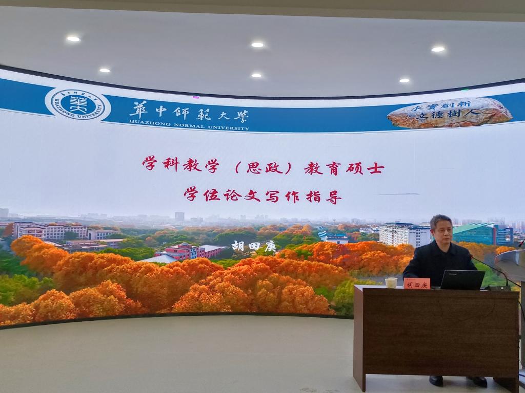 刘建军总结发言指出,胡田庚教授的报告理论功底扎实、实践案例丰富,理论与实践的结合既有广度、又有深度,讲解深入浅出,为学科教学(思政)专业导师和研究生提供了宝贵的学习机会,让师生对硕士论文选题与写作有了更加清晰明确的方向。要求导师和全体研究生认真学习、消化讲座内容,进一步提高学科教学(思政)教育硕士学位论文写作质量。