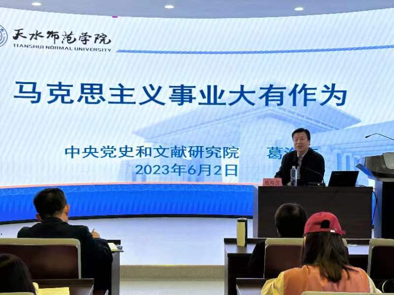 为扎实推进公司“三抓三促”和主题教育工作,开展好“学术活动月”活动。6月2日下午,公司邀请中共中央党史和文献研究院葛海彦研究员来院作学术报告。报告在红色文化教育体验馆红色讲堂举行,由公司党委书记刘建军主持,公司思政课教师、研究生和本科生共计80余人参加。