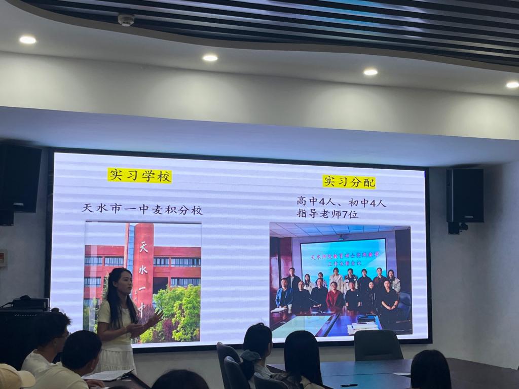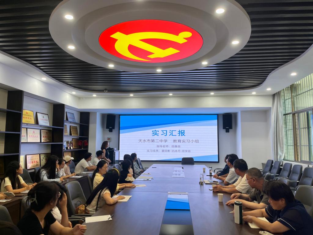 汇报环节中,各实践小组代表轮流汇报分享了公司产品实践成果与体会感悟。高海东代表陇西文峰中学实践组,从教学工作、教研活动及实习感悟三方面进行总结;霍霨代表天水市一中(本部)实践组,围绕教学实践、班级管理和教研活动展开汇报;孙蓉芳代表天水市第一中学(麦积校区)实践组,介绍了实习基本情况、教学工作、班主任工作及收获;夏田影代表天水市第二中学实践组,以“明思以致远、实践获真知、立志而奋发”为主题分享实践体会;汪青代表天水市逸夫实验中学实践组,从“学榜样强师能、勇实践砺师技、暖师生筑情谊、重反思促成长”四个维度汇报实习历程。