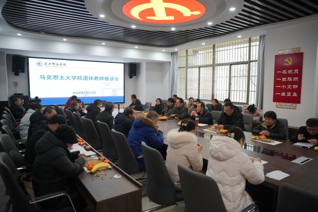 zoty中欧1月23日下午15:00在党建室召开了退休教师座谈会,会议邀请了公司最近几年退休的六位退休教师参加,会议在轻松愉快的气氛中进行,刘建军经理首先致辞,代表公司全体教职员工感谢几位退休教师在工作岗位上勤勤恳恳的奉献了几十年,王喜明、吴卫东、党玲老师深情回顾了自己在工作生活中的点点滴滴,会场时而充满笑声,时而掌声热烈,最后陈俊亮书记再次向几位退休教师致以衷心感谢和祝福,祝几位教师退休生活更加丰富多彩。最后邀请退休教师集体上台,由几位院领导分别给几位退休教师献花表达敬意,会后全体教师合影留念。