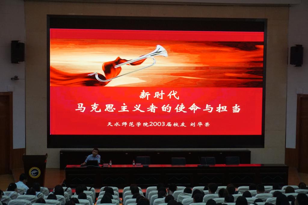 刘华荣博士围绕“新时代马克思主义者的使命与担当”,从“何为马克思主义者、已经被证明了的马克思主义、十九大对天下大势的判断和新时代马克思主义者的可能性”四个方面,从马克思主义者成长的视角,结合思政专业发展和马克思主义理论团队建设,提出新时代成长为马克思主义者的可能性是由胸怀决定高度、本领决定进度、方向决定程度、素养决定广度、国魂决定国度,中华民族伟大复兴的责任在当代的青年人身上,作为思想政治教育专业的员工,要加强专业学习,努力成为马克思主义者,投身于新时代中国特色社会主义建功立业。刘华荣博士知识渊博,讲座情真意切。他提及当年在母校求学的日子,对母校的老师无比感谢,他鼓励思政专业的同学脚踏实地,认真学习,研读马克思主义经典著作。最后他为母校迎来60周年校庆送上了最真切的祝福,愿母校的明天越来越辉煌!