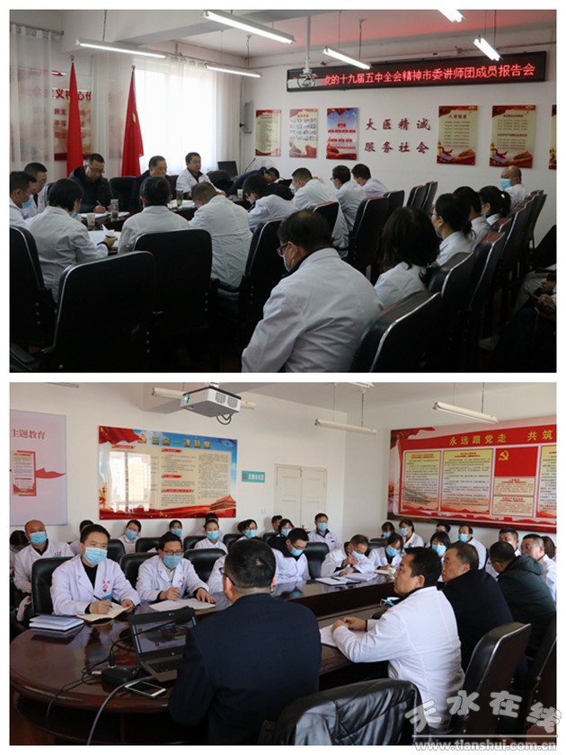 此前,医院领导班子成员还参加了市委组织的党的十九届五中全会精神宣讲报告会,公司党总支召开了理论学习中心组学习(扩大)会议,学习并传达全会精神,引导广大党员干部把思想和行动统一到全会精神上来,把学习贯彻全会精神同推动当前工作紧密结合,扎实做好年底各项工作,为医院“十四五”发展谋好篇、开好局、起好步。