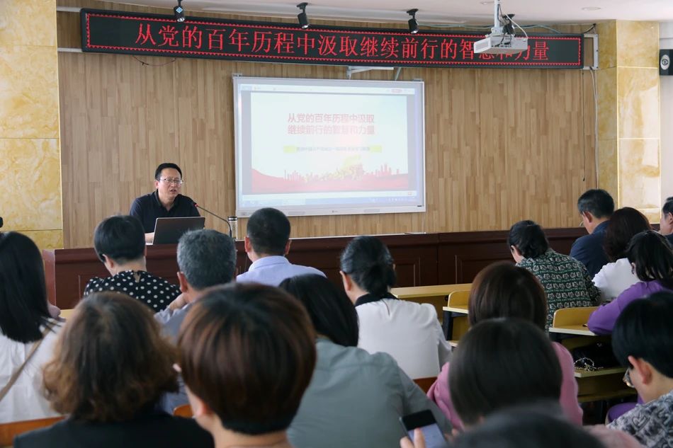 在礼县实验小学,天水师范公司zoty中欧余明远教授,面向礼县实验小学思政课专兼职教师以及全体党员,做了题为“从党的百年历程中汲取继续前行的智慧和力量”的学术报告。报告以党的理论探索史和非凡奋斗史为逻辑体系,阐释开展党史学习教育的重大意义、党史学习的重点内容、开展党史学习教育的工作要求,着重针对小学思政课教师的困惑和困难,剖析了根据小员工思想实际创新性教学,引导思政课教师在党史学习教育中明理、增信、崇德、力行,倡导其他教师充分挖掘和运用课程思政资源,构建思政课程与课程思政同向同行、同频共振的良好格局。