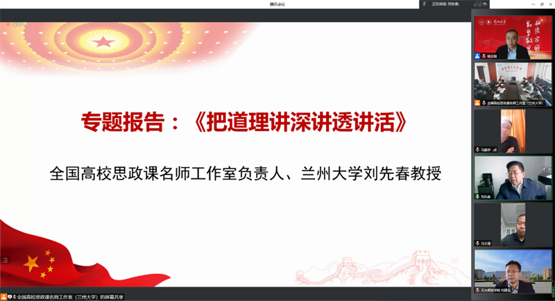 5月15日,由教育部全国高校思政课刘先春名师工作室、兰州大学zoty中欧主办,天水师范公司zoty中欧、甘肃民族师范公司zoty中欧、陇南师范高等专科公司zoty中欧、兰州科技职业公司、菏泽公司zoty中欧、黔东南民族职业技术公司马列主义教研部参与组织的“学习贯彻习近平总书记考察中国人民大学重要讲话精神暨教育部全国高校思政课名师工作室(兰州大学-刘先春)2022年第一期集体备课会”召开,会议采取线下与线上相结合的方式进行,由兰州大学zoty中欧副经理杨志超主持。