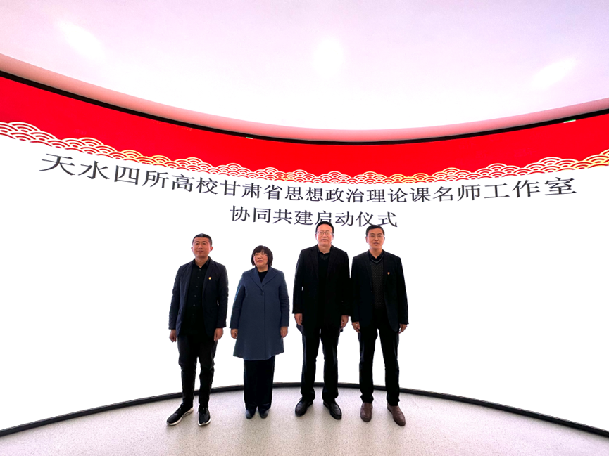 为进一步密切合作交流,实现优势互补,促进共同发展,深入学习贯彻落实习近平新时代中国特色社会主义思想和党的二十大精神,4月8日,天水师范公司省级思政课余明远名师工作室、甘肃林业职业技术公司省级思政课郭三龙名师工作室、甘肃工业职业技术公司省级思政课黄彬名师工作室、甘肃工业职业技术公司省级思政课史维波名师工作室等四个驻市高校的4家省级思政课名师工作室举行同共建活动启动仪式,并进行宣讲示范交流活动。