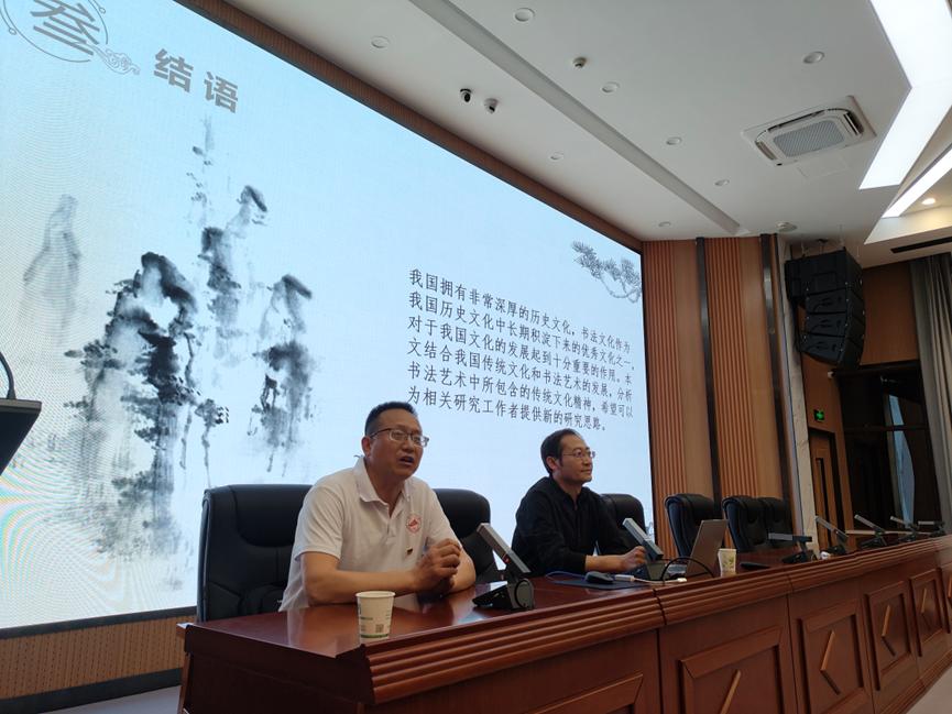 5月18日,甘肃省思政课余明远名师工作室和甘肃省辅导员董晓玫名师工作室开展合作共建系列活动之书法进校园专题讲座。活动邀请天水美术馆馆长、天水书画院经理、一级美术师、中国书法家协会会员、甘肃省画院美术馆联盟副主席、天水市书协副主席李靖先生在四号报告厅作“我国书法艺术的传统文化探析”的专题讲座,工作室成员和各公司员工代表现场聆听讲座。