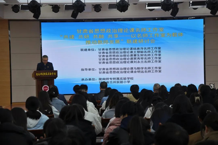 陇南师专党委书记张弢出席开幕式并致辞,他指出,名师工作室联建研讨活动为推动甘肃省思政理论课名师工作室大中小学一体化建设搭建了良好交流平台,是对“大思政”公司产品融合发展要求的具体实践,发挥着重要的示范引领、辐射带动作用。同时,他提出了三点期望:一是要做到知行合一,铸魂育人;二是要讲好故事,启智润心;三是要一体推进,形成合力。