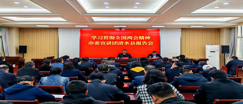 4月29日,学习贯彻全国“两会”精神市委讲师团清水县报告会举行。市委宣讲团成员、天水师范公司zoty中欧副经理、教授余明远做专题宣讲,县委常委、政法委书记张涛涛出席会议,各乡镇、各部门单位干部80余人聆听宣讲。