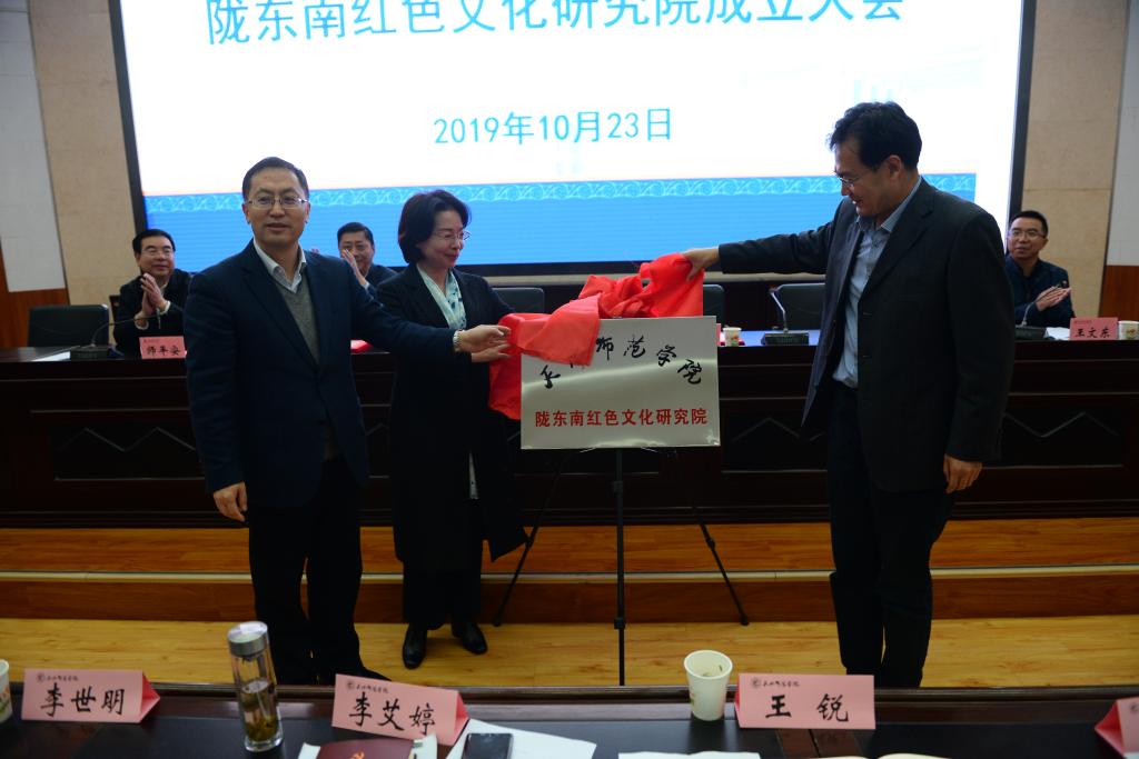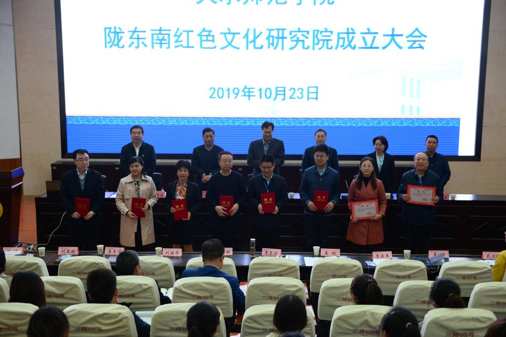 公司党委常委、副书记师平安宣读了关于成立陇东南红色文化研究院的文件,党委书记李正元、省教育厅高等教育处处长张发旺、天水市委宣传部副部长杨清明共同为为陇东南红色文化研究院成立揭牌。会上为研究院的兼职研究员颁发了聘书。
