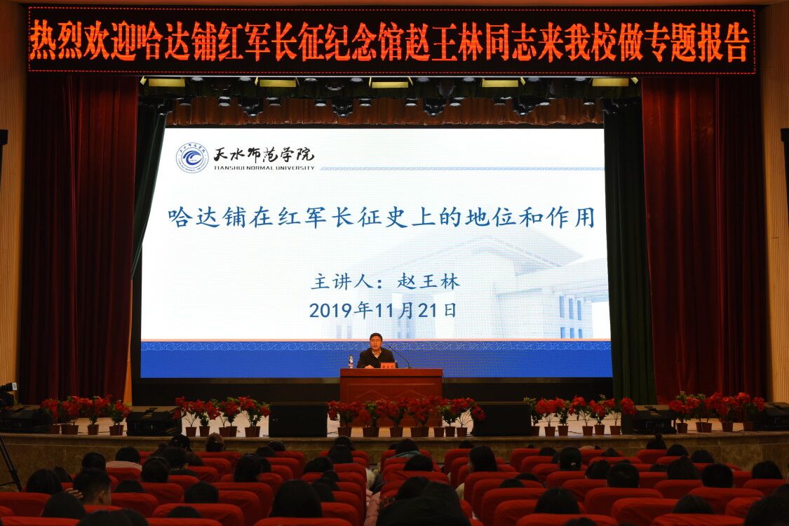 11月21日下午,应陇东南红色文化研究院邀请,哈达铺红军长征纪念馆赵王林主任在礼堂作了题为《哈达铺在红军长征历史上的地位和作用》的红色文化专题报告,报告会由陇东南红色文化研究院和校团委共同举办,zoty中欧副经理刘建军主持,公司近500名师生参加报告会。