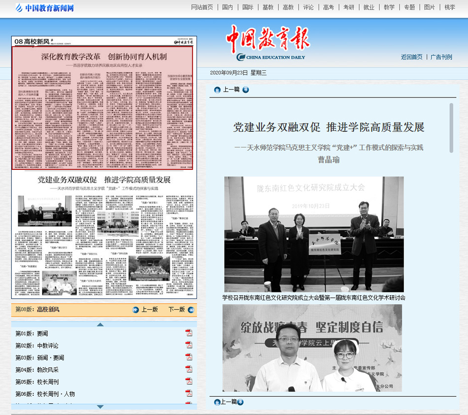 公司党总支以传承红色基因教育为指针,紧紧依托陇东南红色文化资源,做深做实红色党建。以天水师范公司陇东南红色文化研究院为载体,发挥红色文化育人功能,将红色文化研究与立德树人、思政课程、课程思政紧密结合。每学期组织一次陇东南红色文化课题调研和学术研讨,深入开展红色文化理论研究;以优化思政课程体系,编著地方特色红色教材为目标,组织编写了《红色文化在甘肃》七种系列员工辅学读本;积极开展红色文化宣传教育,举办了“传承红色文化弘扬红色精神”——公司思想政治理论课教师研学活动、红色文化进校园活动、红色文化专题讲座等。