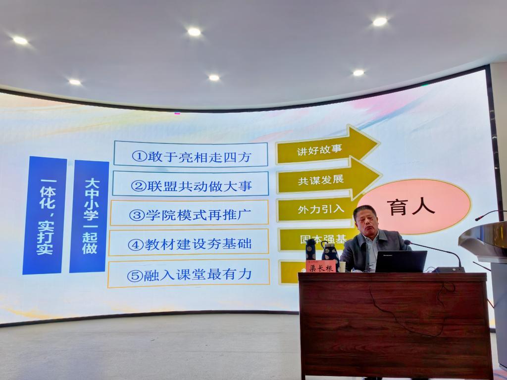 渠长根教授从“前提:一体化需要抓手”、“核心:红色文化是最佳抓手”、“关键:努力用好红色文化抓手”三个方面系统进行了阐述,深入解读了党中央、教育部近年发布的关于公司思想政治课一体化建设的系列政策文件,立足教育规律、青少年成长规律、人类成长规律,指出一体化是系统工程,适宜的抓手必不可少,认为红色文化是一体化的最佳抓手,结合浙江理工大学zoty中欧多年来用好红色文化推进大中小思政课一体化的相关实践经验,提出要以大中小学学段为“经”,以思政课程的要素为“纬”,建设纵向衔接、横向贯通、螺旋上升的全学段思政课程体系,用红色文化服务思政课一体化,努力做实大中小学一体化、区域一体化、党政军民学一体化、课程思政与思政课程一体化、理念与行动一体化,并祝福公司红色文化融入大中小学思政课有声有色。