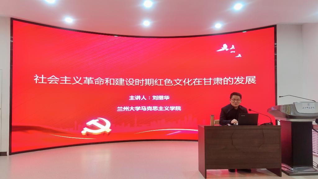 为深入学习习近平总书记视察甘肃重要讲话精神,教育员工进一步了解红色文化在甘肃的发展,以红色精神“增信”,坚定员工的理念信念,增进对中国特色社会主义的信念、对实现中华民族伟大复兴中国梦的信心。11月24日,应公司邀请,甘肃省中共党史学会常务理事、兰州大学西北党史党建研究中心副主任、兰州大学zoty中欧副教授刘继华博士为公司员工作了题为“社会主义革命和建设时期红色文化在甘肃的发展”的专题讲座。公司党委书记刘建军主持,2021级思政专业本科生90余人参加。